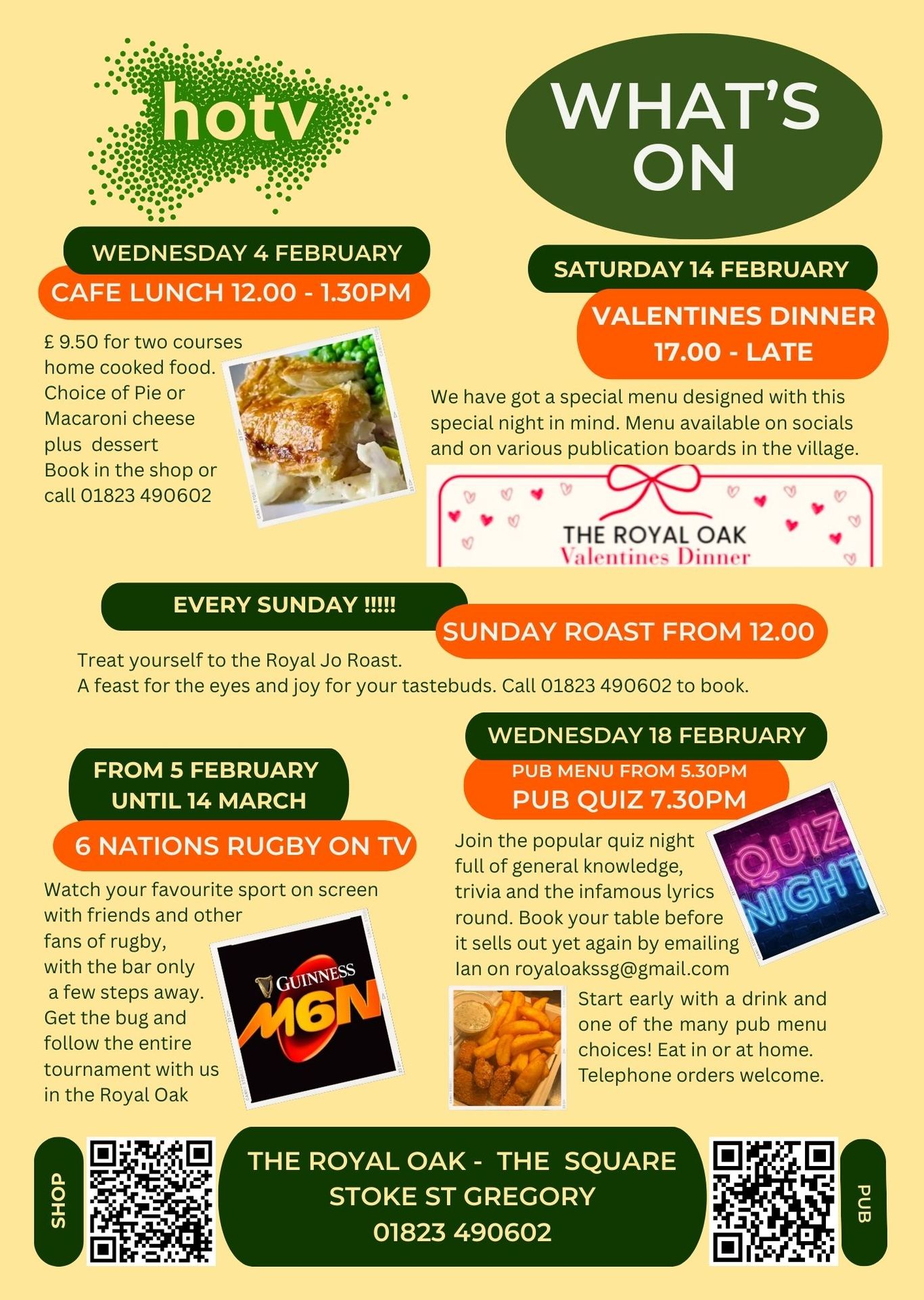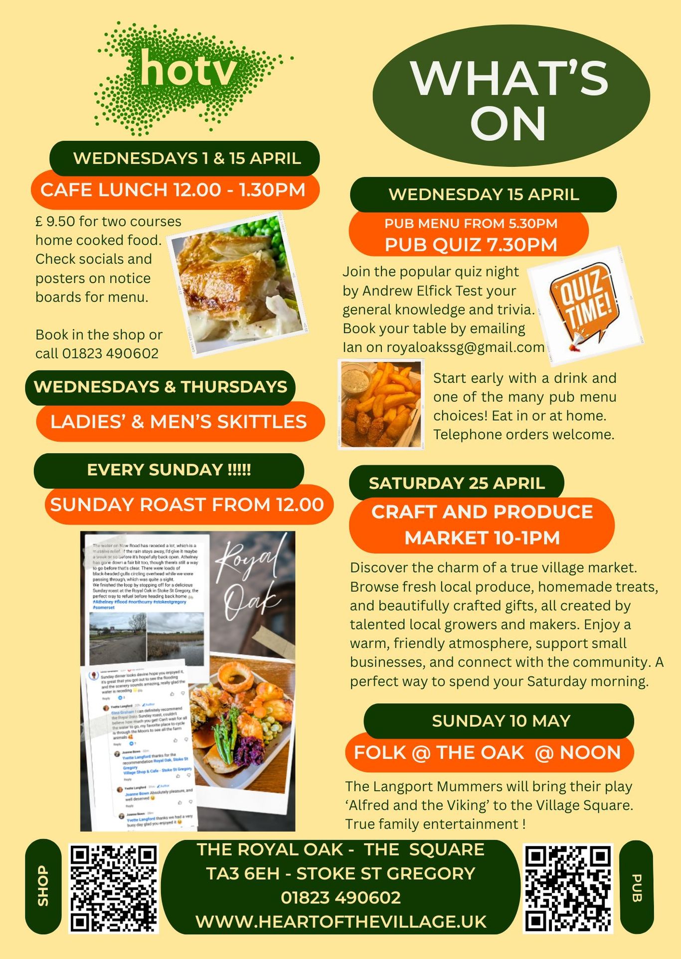 Be sure to follow the Pub facebook page and the Village Shop facebook page for last minute details.