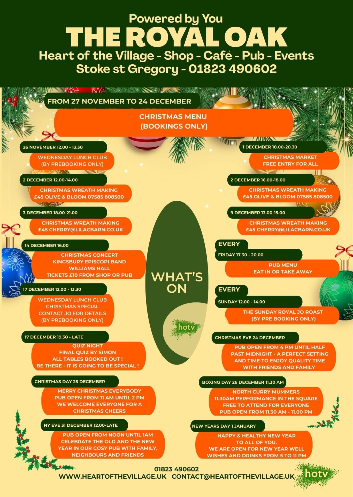 Be sure to follow the Pub facebook page and the Village Shop facebook page for last minute details.
